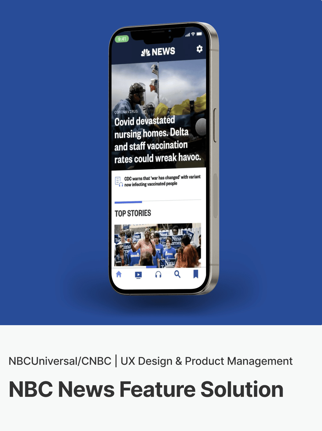 Contributed to the design of the first NBC News mobile app 'Search' feature to improve the overall navigation experience.
